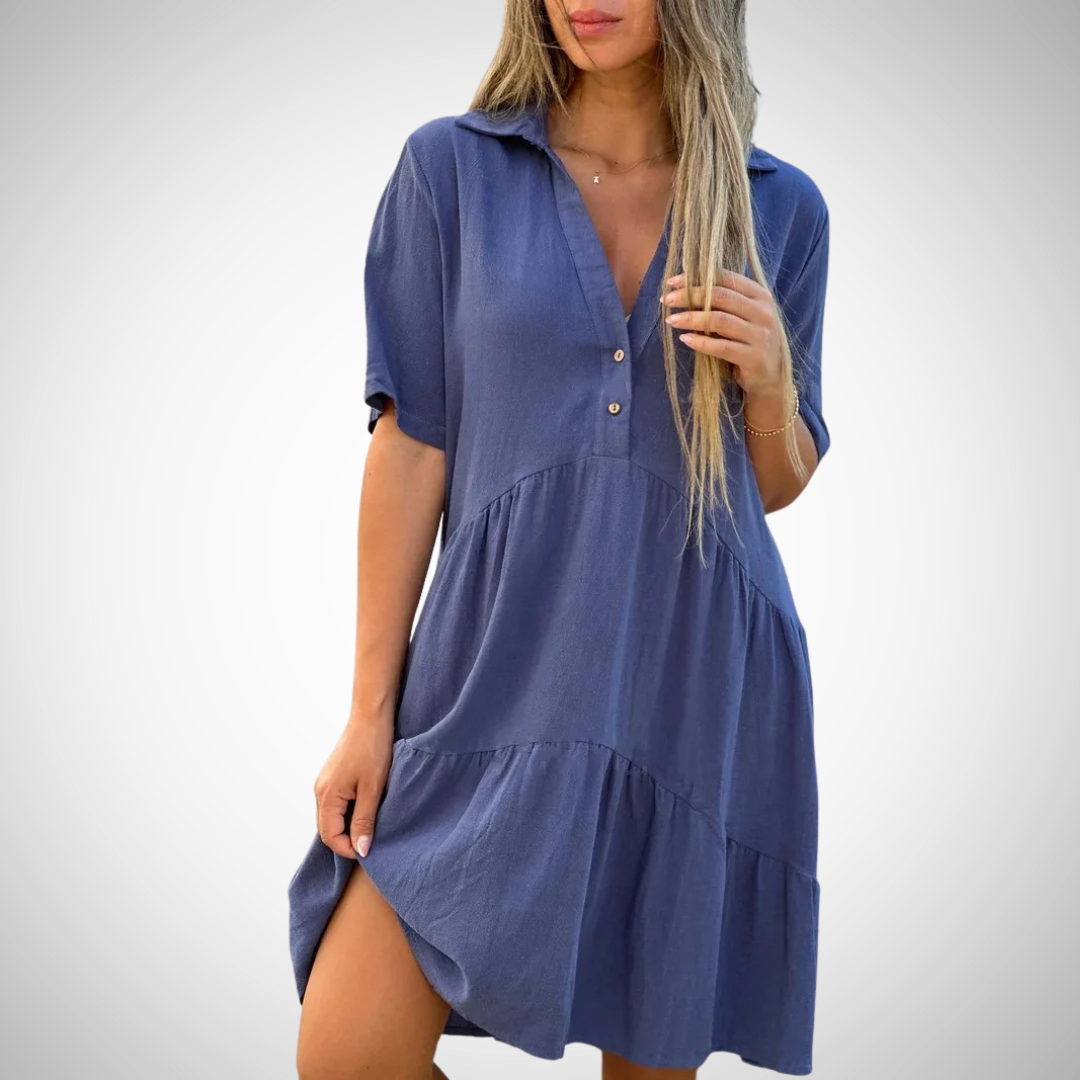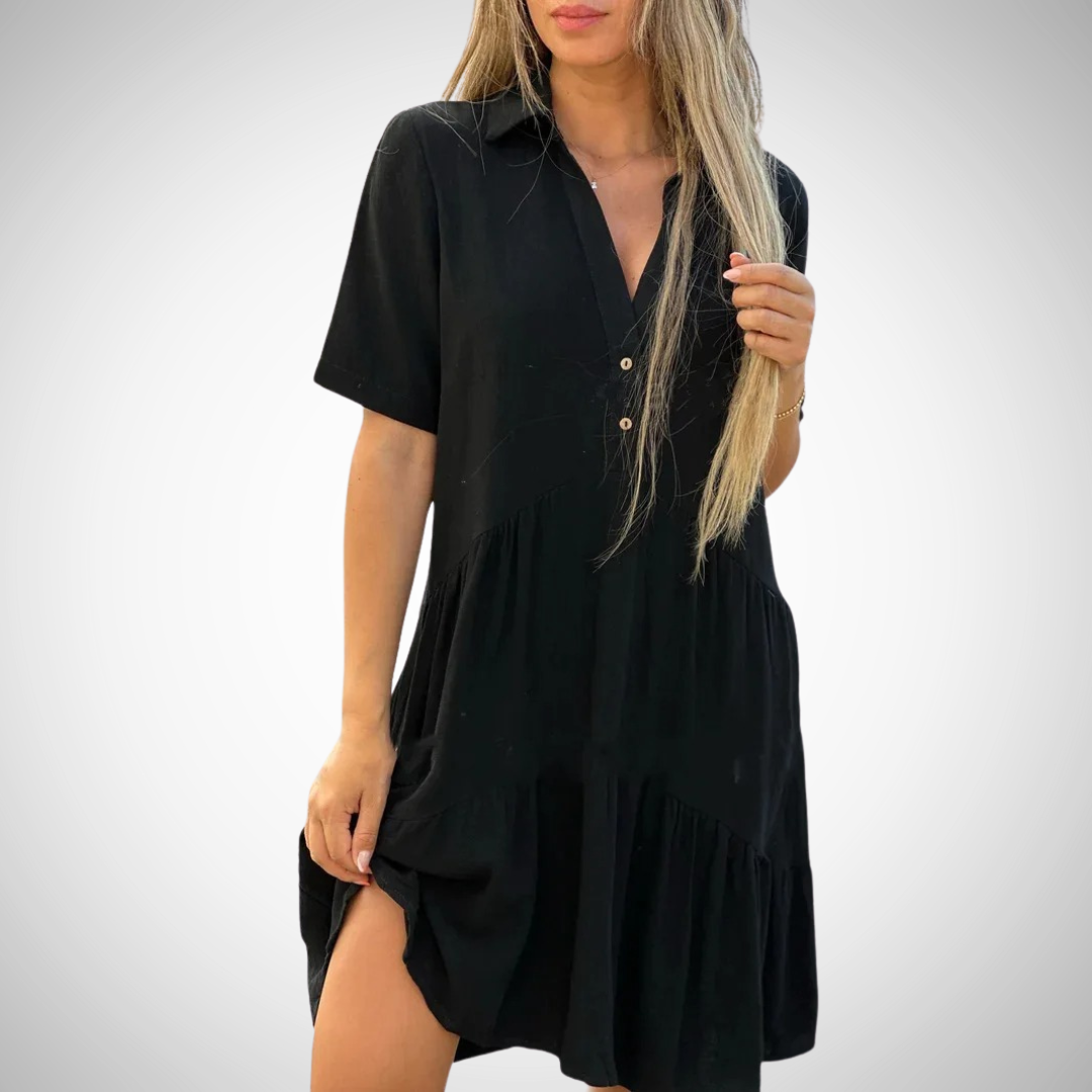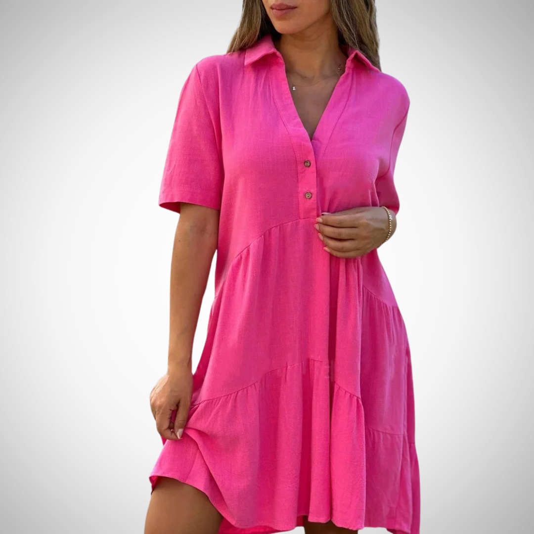 Tilføj denne must-have sommerkjole til din garderobe og nyd den perfekte blanding af stil, komfort og alsidighed!