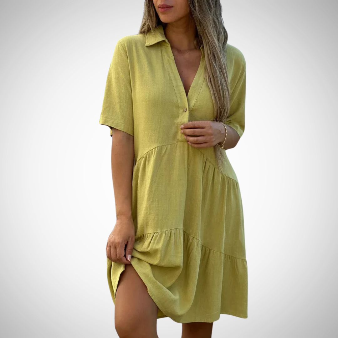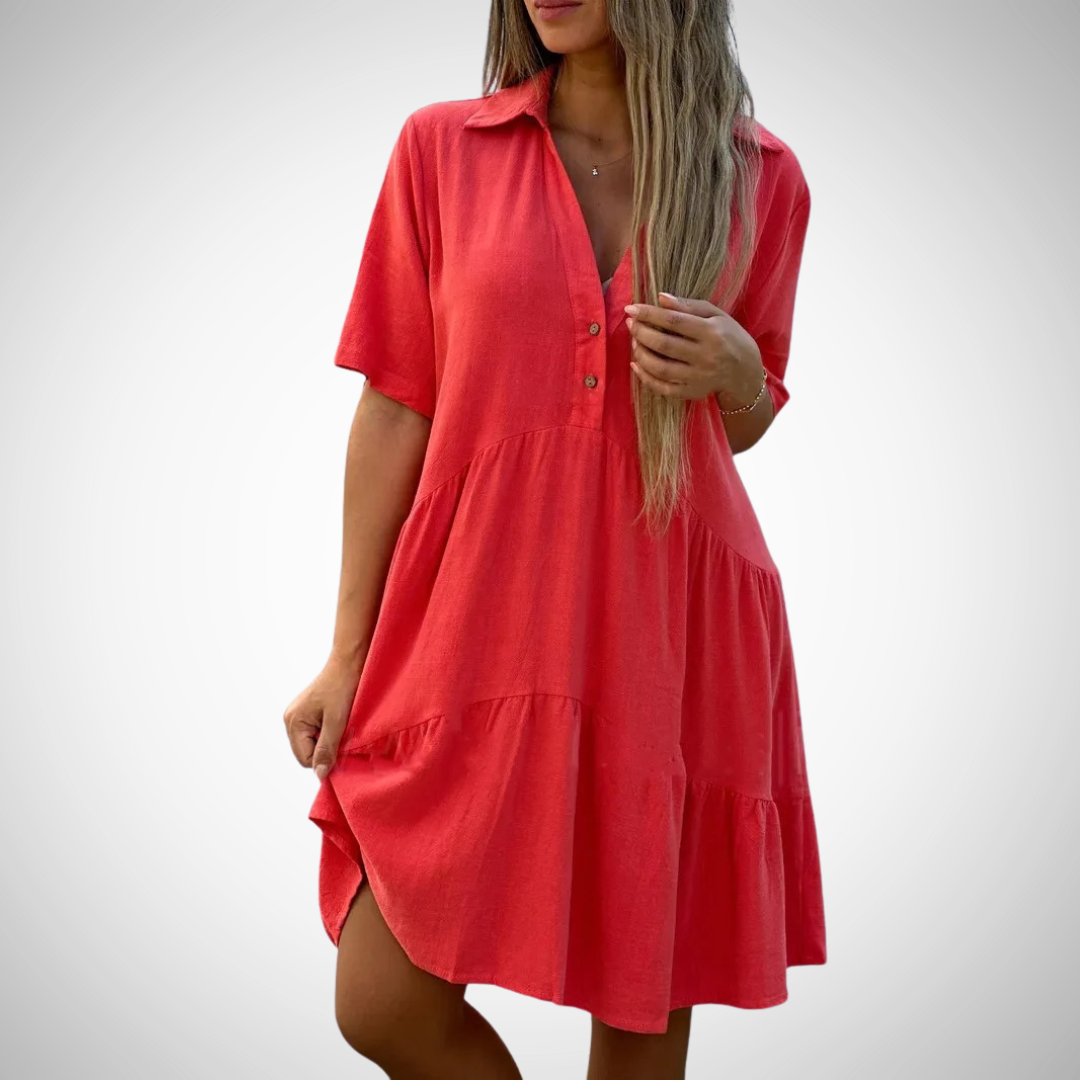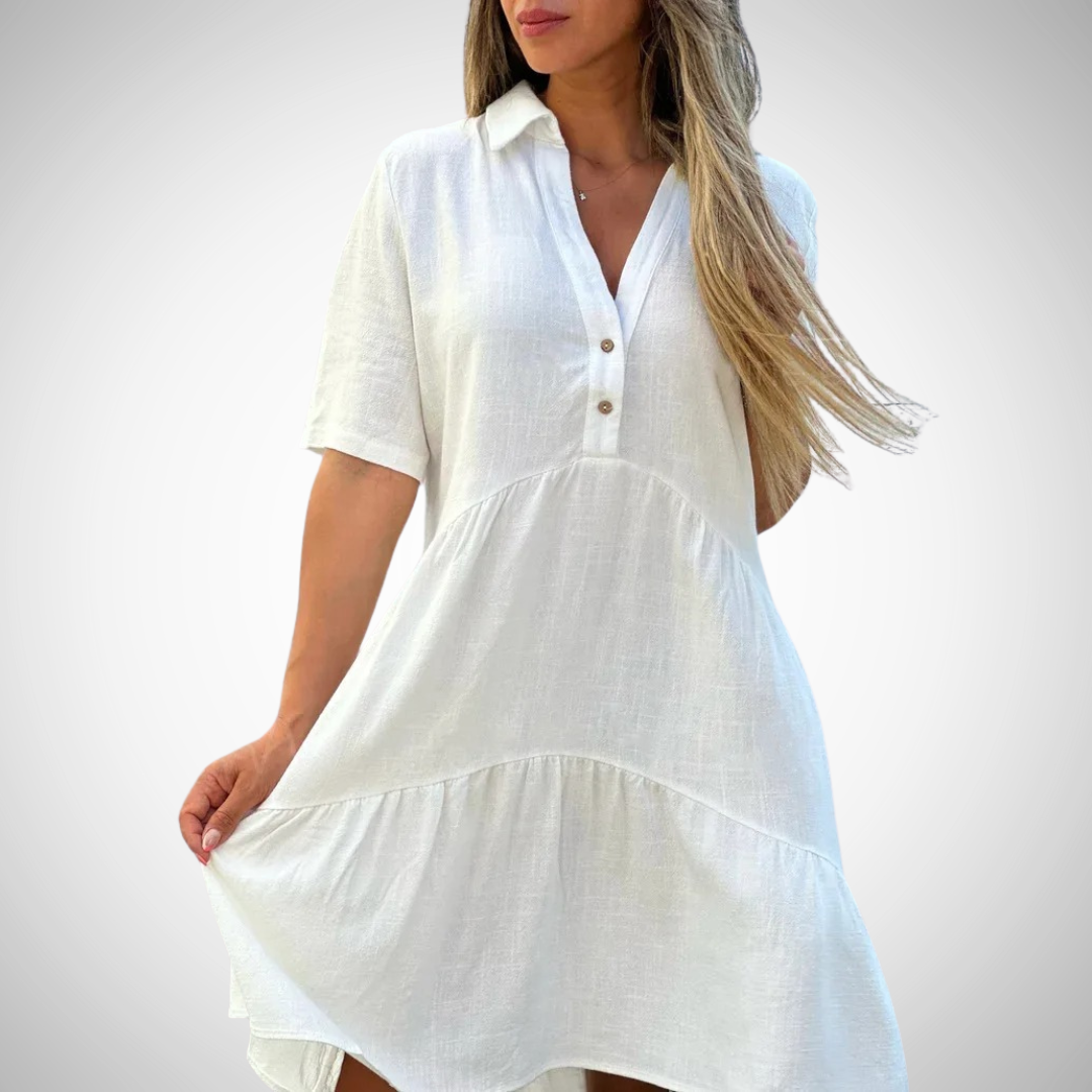 Tilføj denne must-have sommerkjole til din garderobe og nyd den perfekte blanding af stil, komfort og alsidighed!